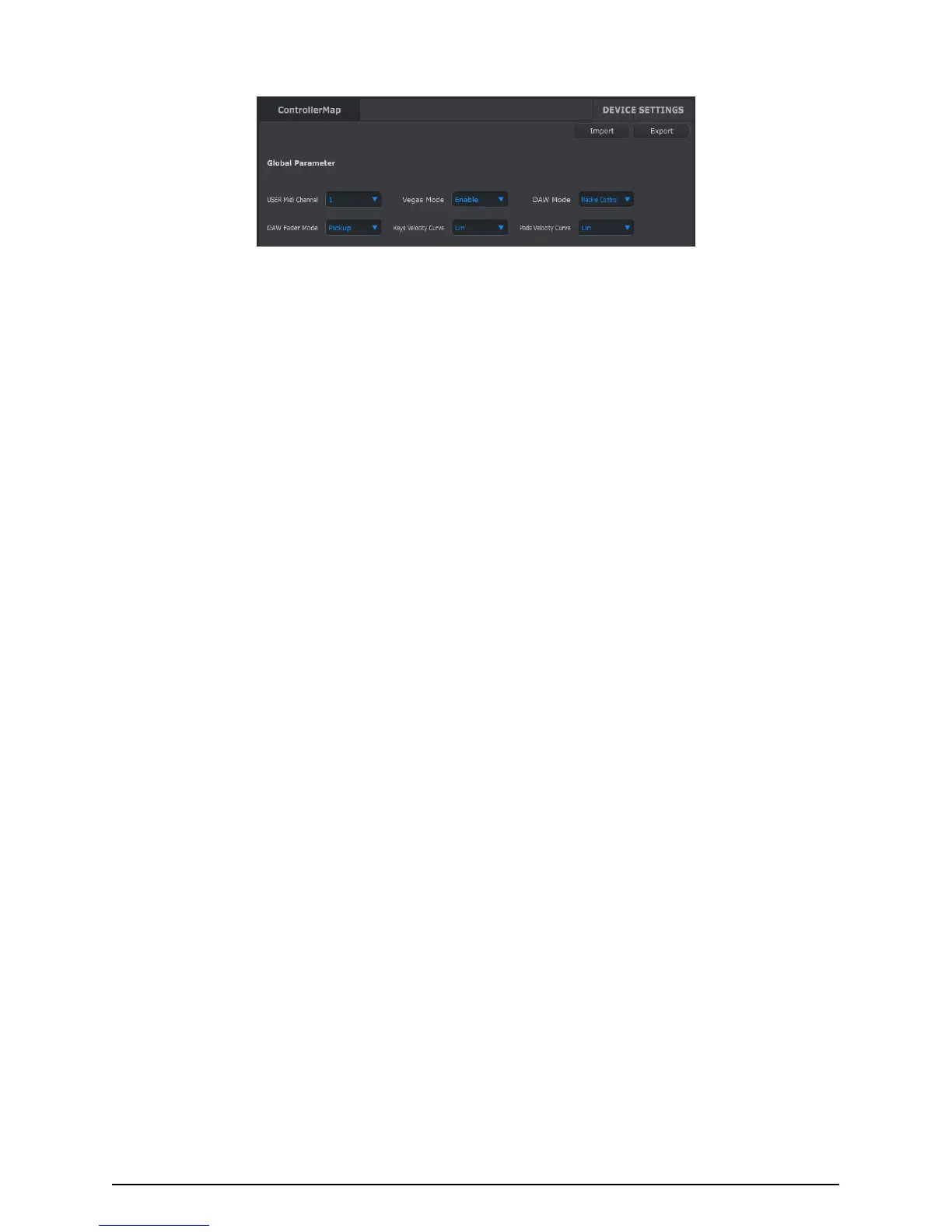• DAW Mode: This parameter lets you toggle the control language used by the DAW