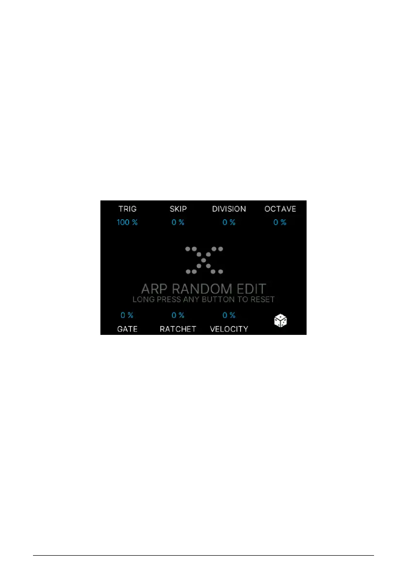 • Trig: Probability that an Arpeggiator step is triggered or not (leaving a blank). At