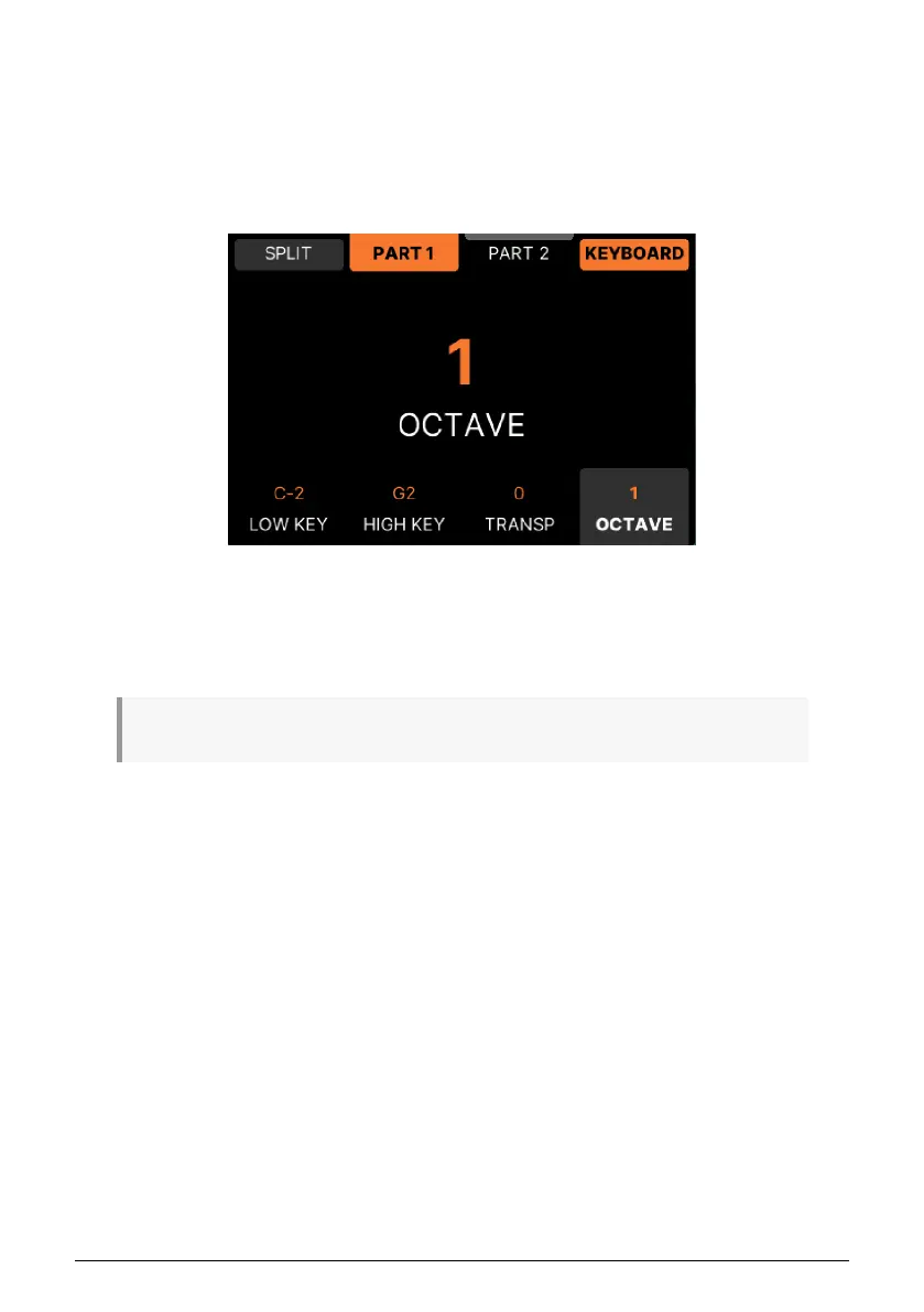 The four lower buttons set the note range, transpose, and octave values for the Part your