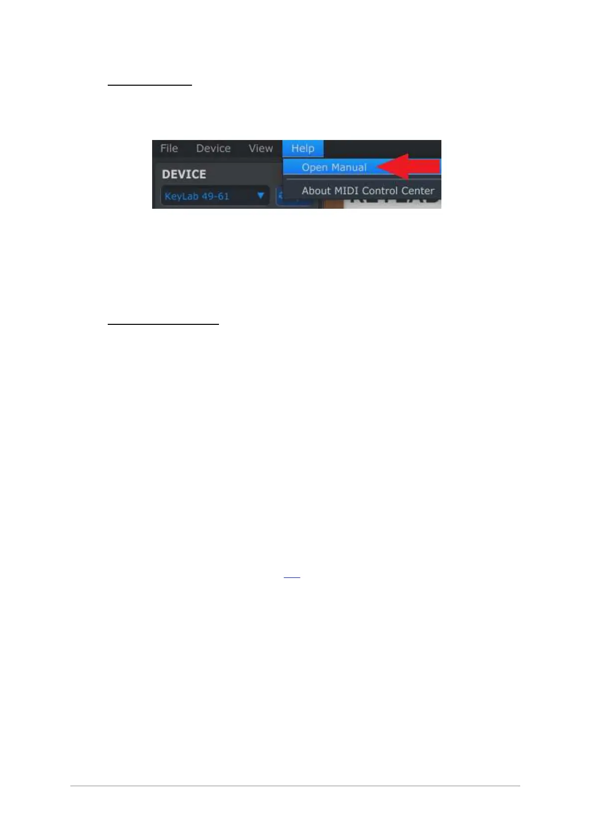There is a built-in help file for the MIDI Control Center that can be accessed using the