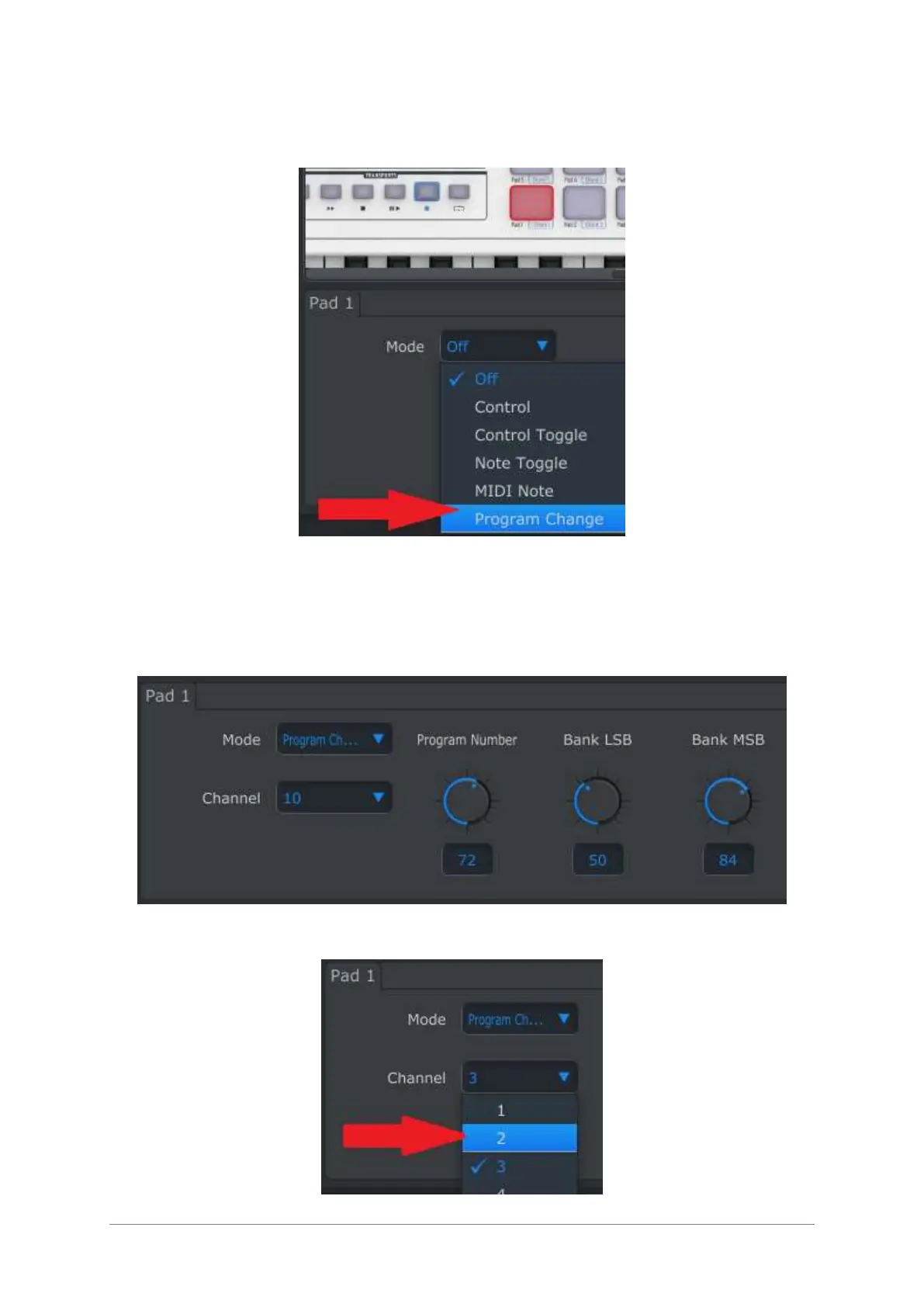 visual confirmation. Then use the pull-down Mode menu to select “Program Change”: