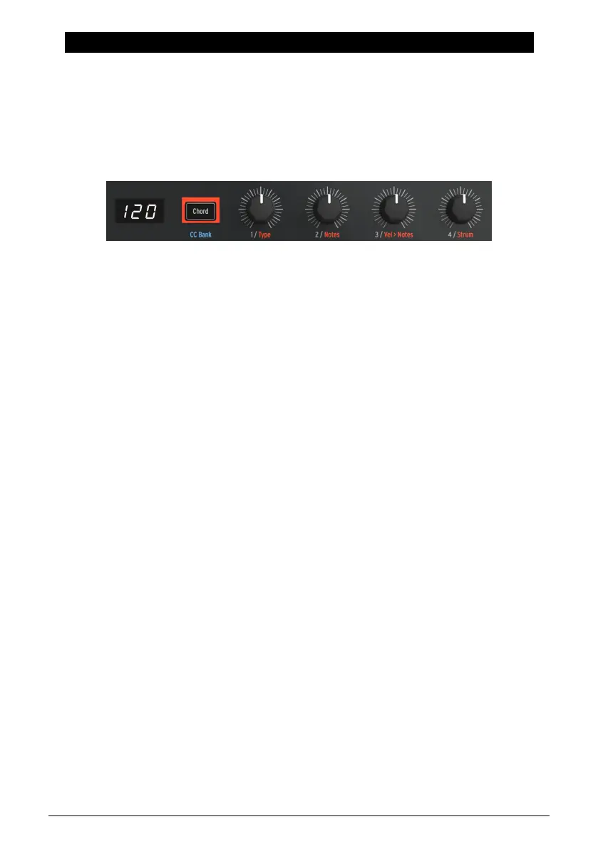 synths. The Chord button has a second function that, when activated, turns the knobs into