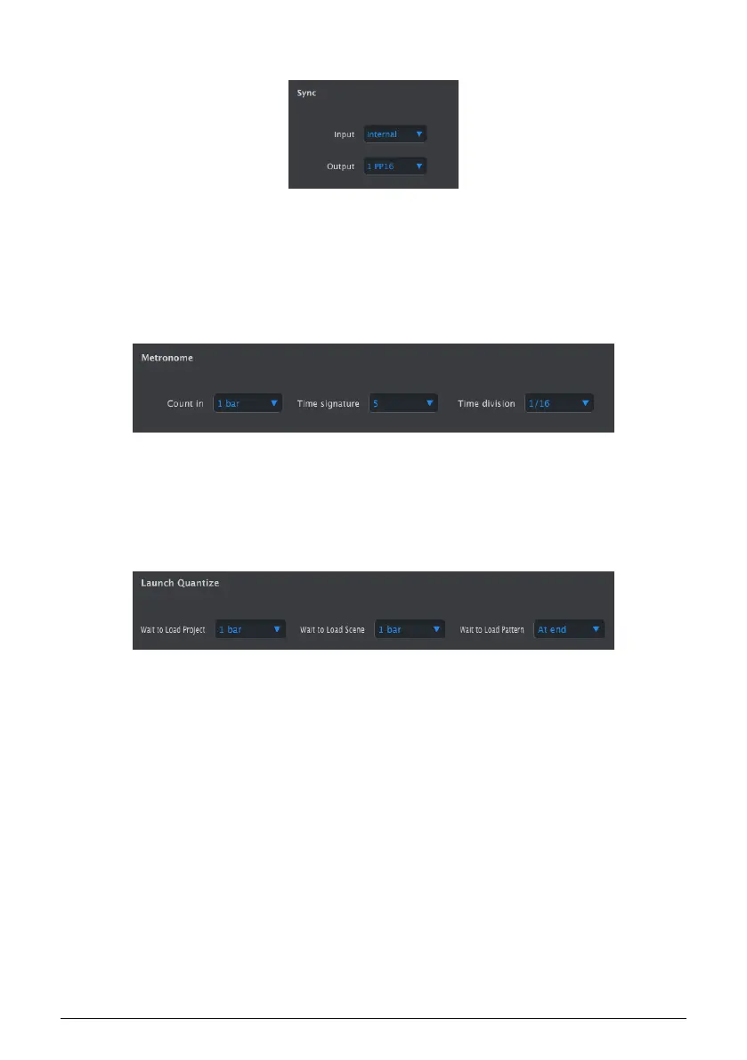 These settings allow you to specify the inputs for receiving synchronization and tempo