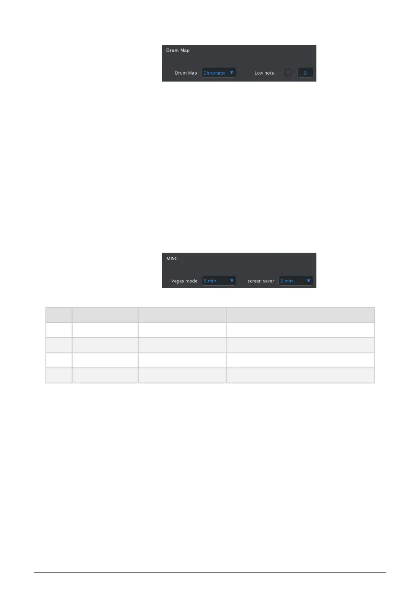 There are four options for the MIDI note assignments of the keys in Drum mode: