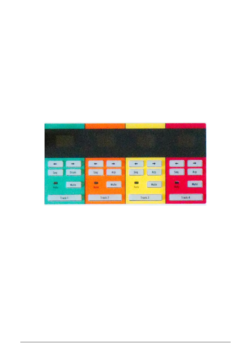 across the entire front panel. For example, Track 1 is green and when it is selected, all of the