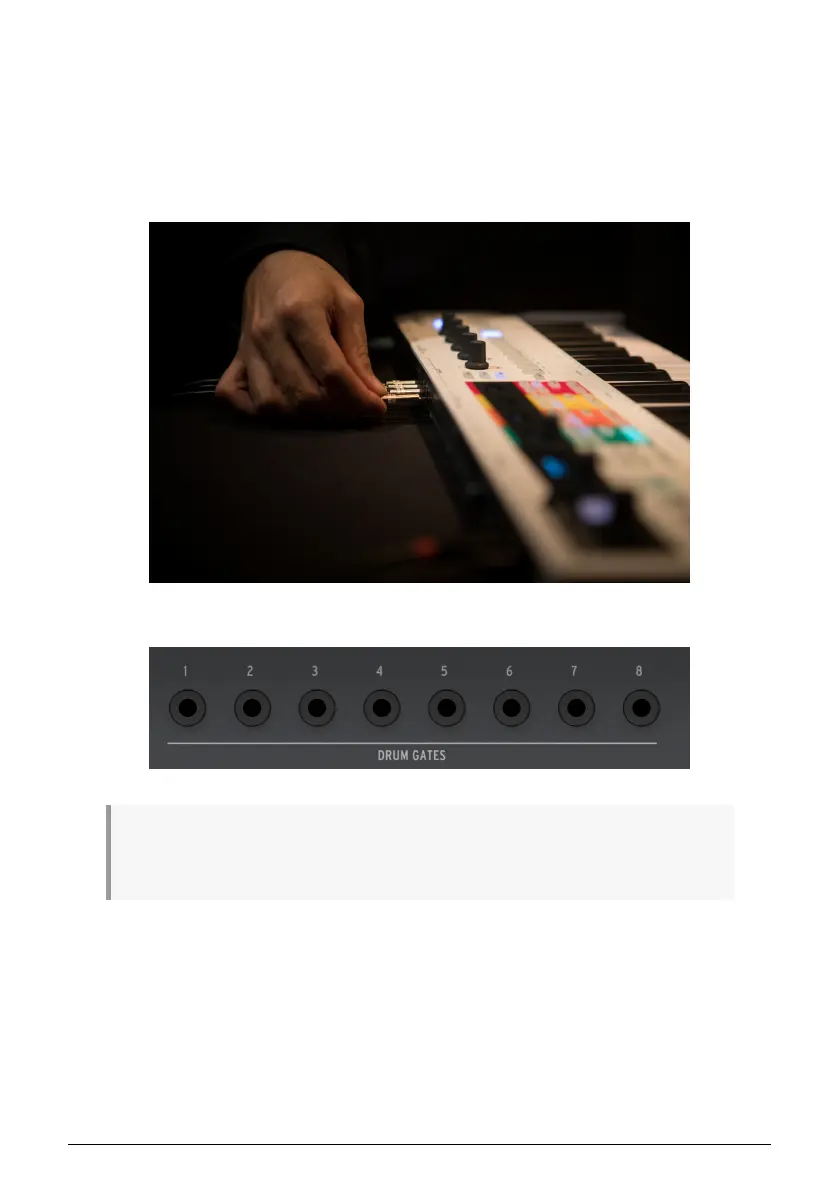 ♪: These gate signals are not limited to triggering drum sounds. You can connect these outputs to