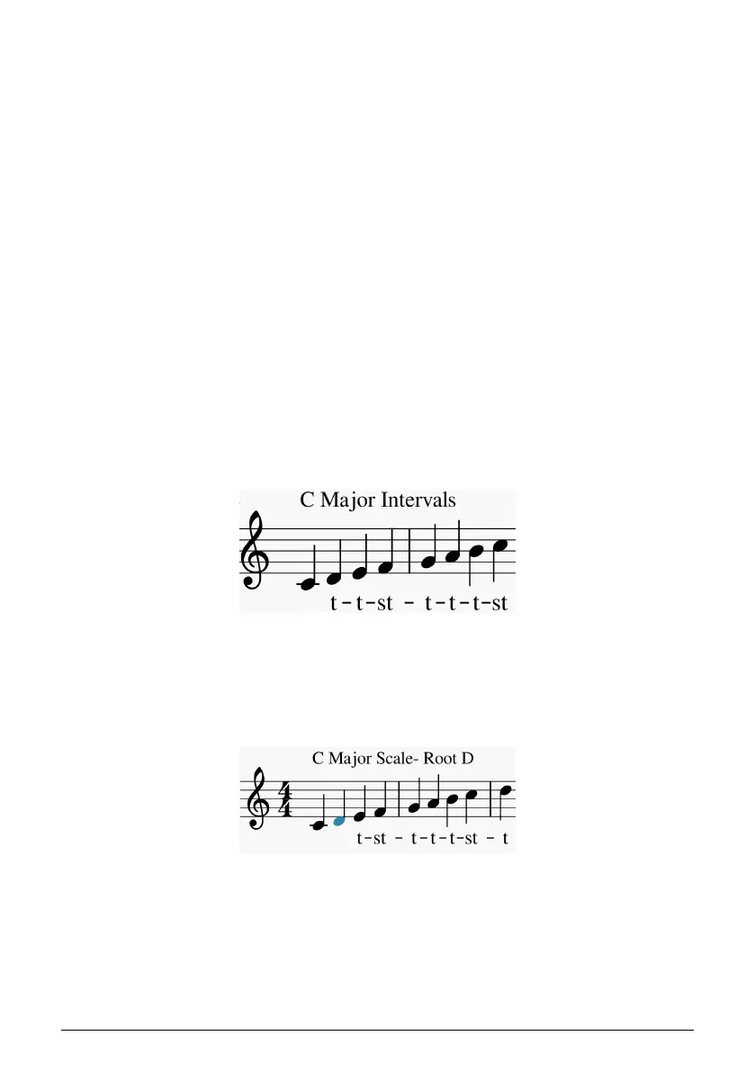 stronger. When you add notes of a major scale, the result sounds forceful and happy,