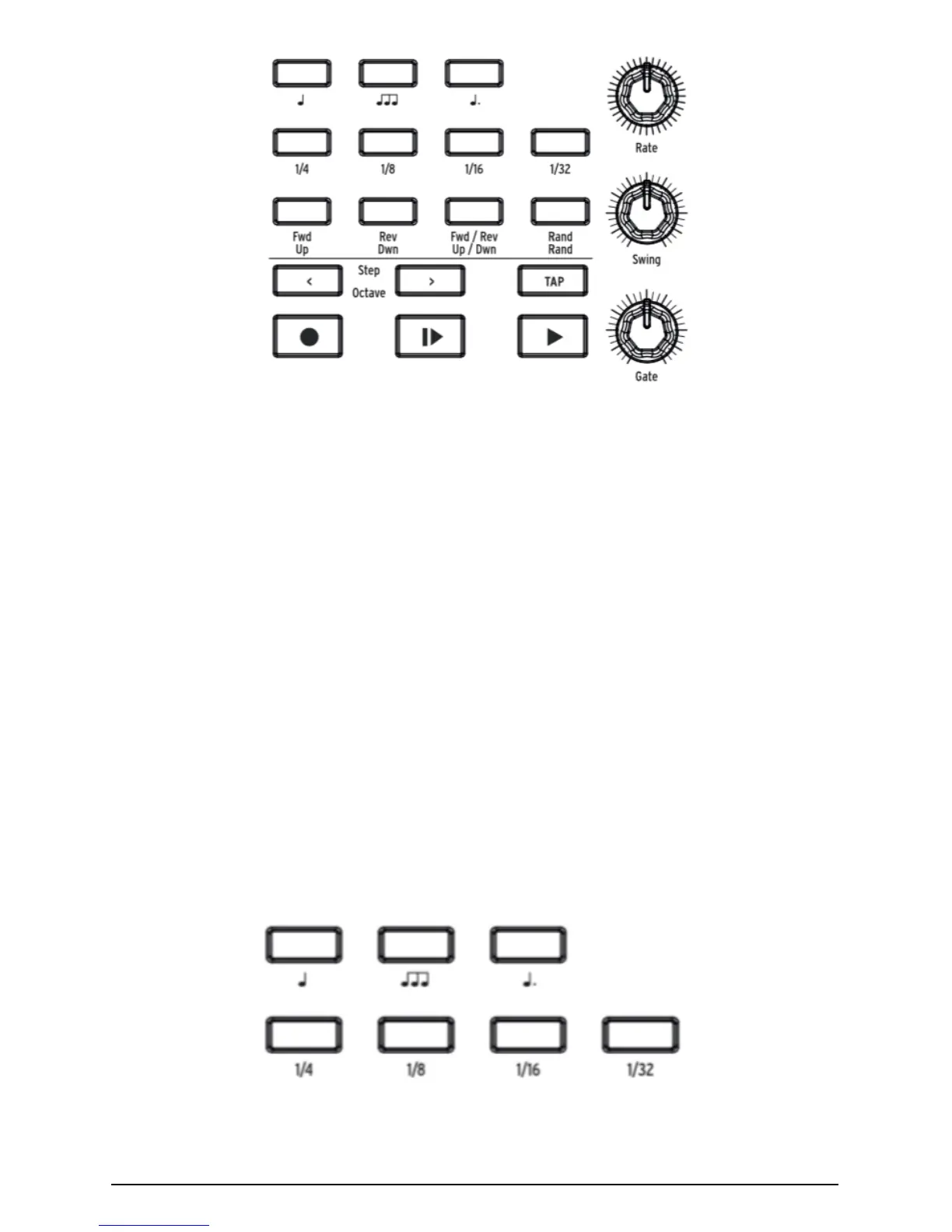 is shown in the display. When sync’d to MIDI, the rate knob will
