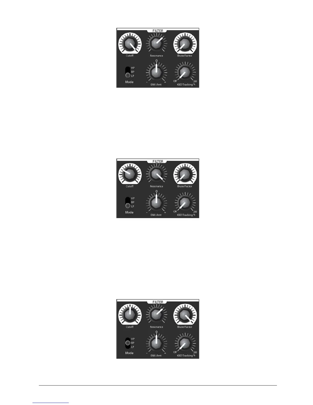 vary greatly based on the settings of the CUTOFF and RESONANCE knobs as well as