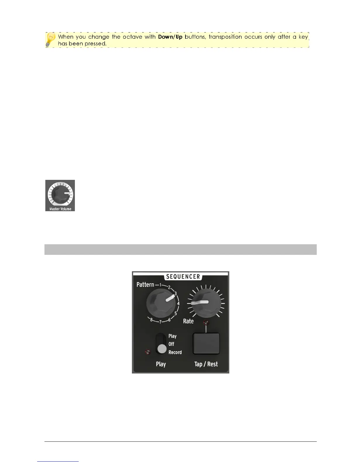 The Master Volume knob sets the MicroBrute overall output volume, which fits