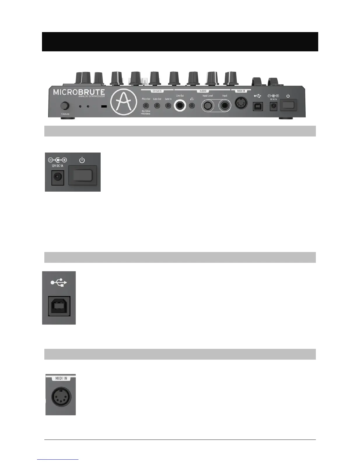 MicroBrute. Connecting any other power supply could damage the MicroBrute.