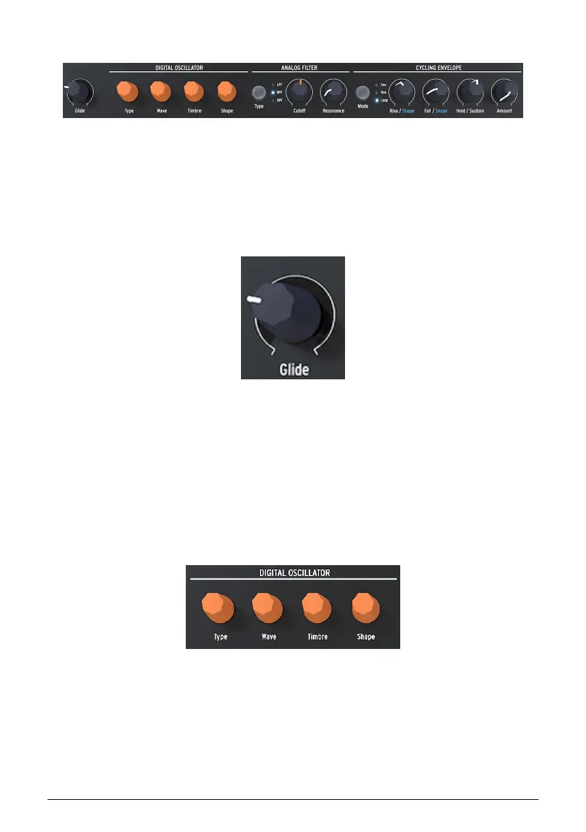 transition. This knob enables you to set a glide amount.