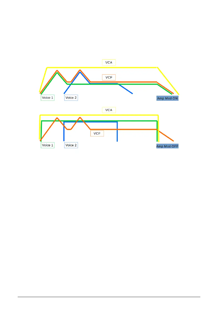 In Paraphonic mode with Amp Mod ON the envelope is duplicated several times depending