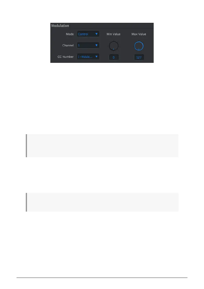 • CC Number lets you select the MIDI CC number that the Mod strip will control,