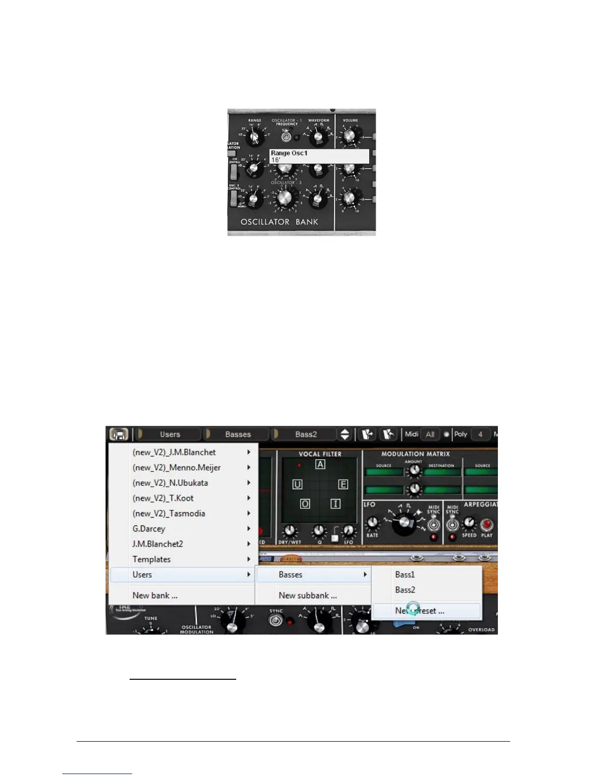 bank and sub-bank and a new preset are immediately created. The names “new bank”,