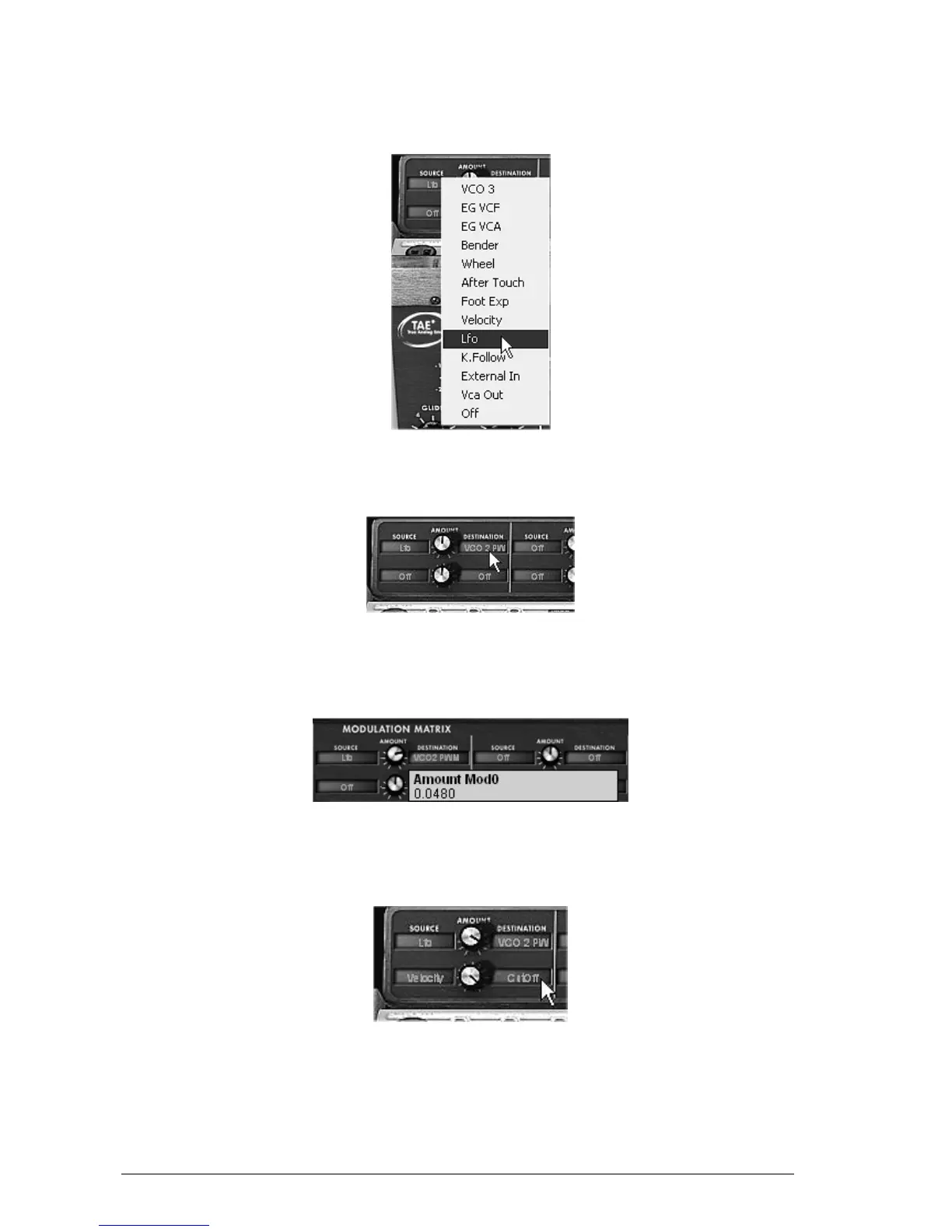 right of the first line: choose “VCO2 PW” (square width of oscillator2).
