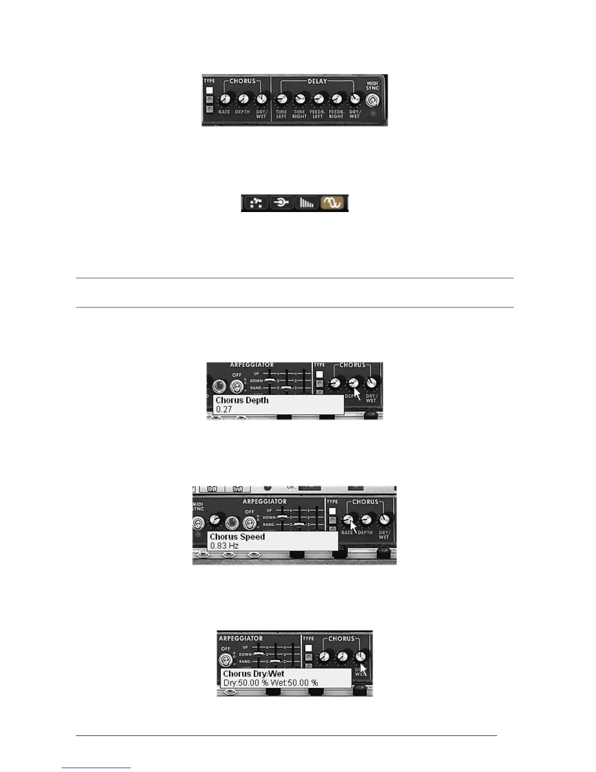 The 3 “Type” buttons choose between the 3 types of chorus: simple, medium, complex.