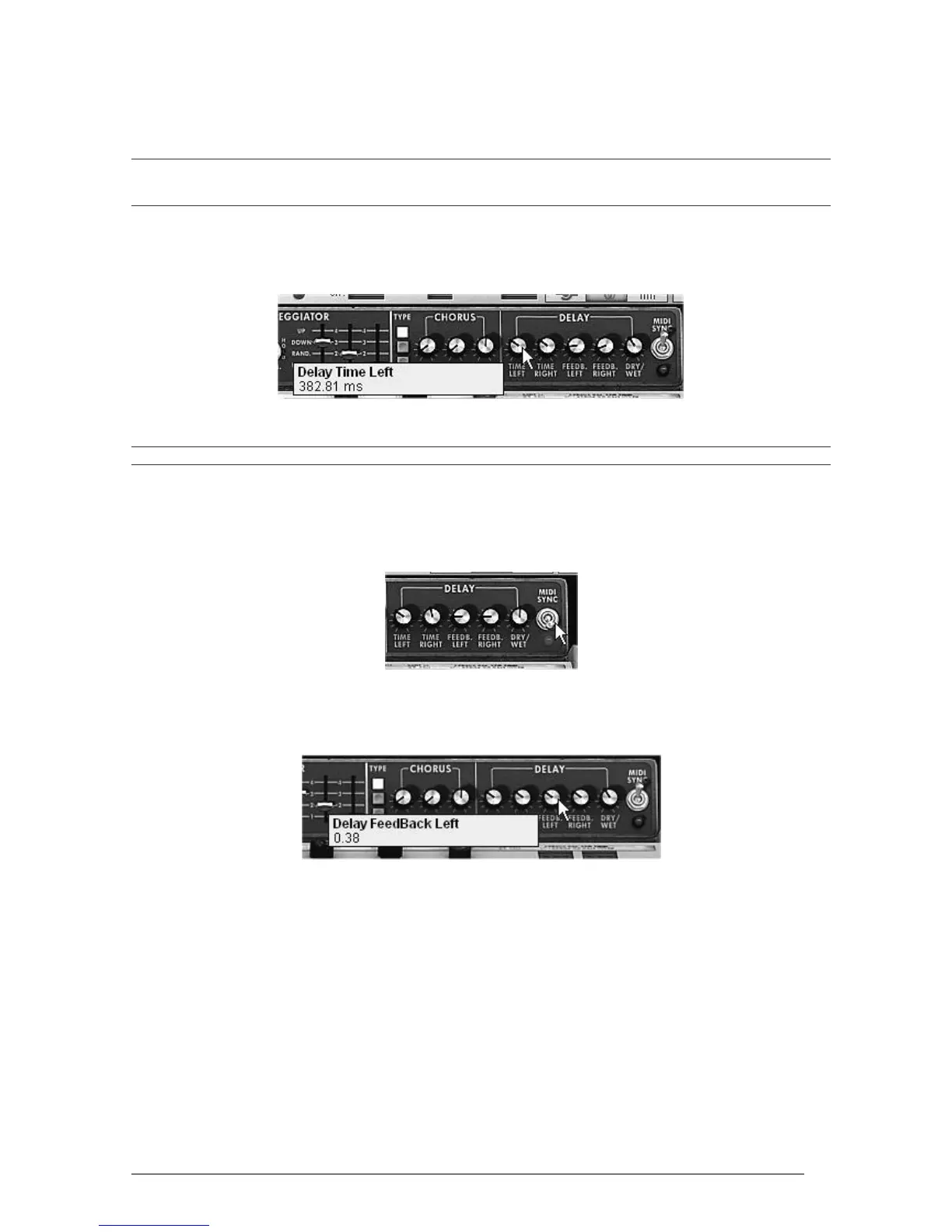 To obtain a stereo effect, it is important that the two time settings (Time Left & Right) have different values.