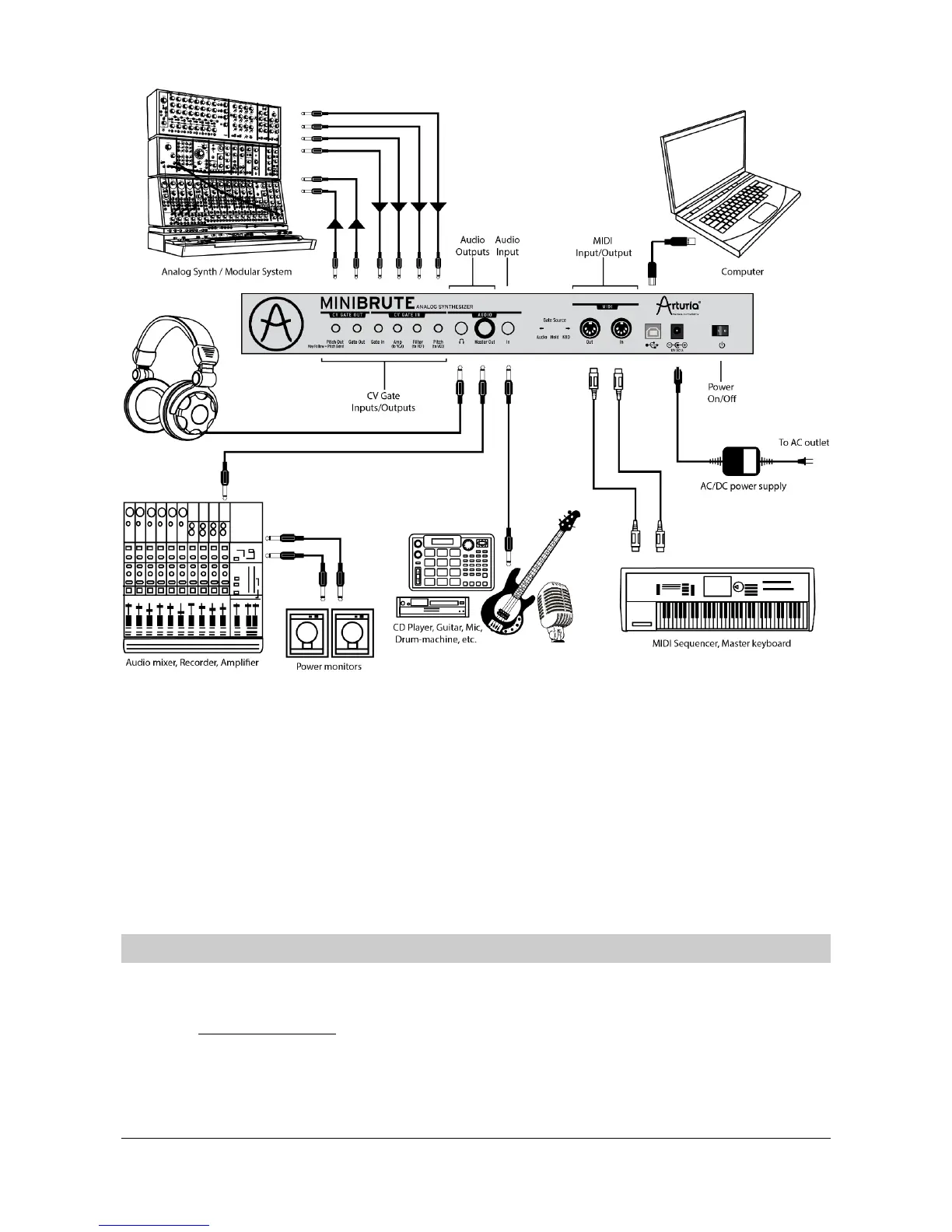 Here is an overview of the MiniBrute synthesizer’s connectors: