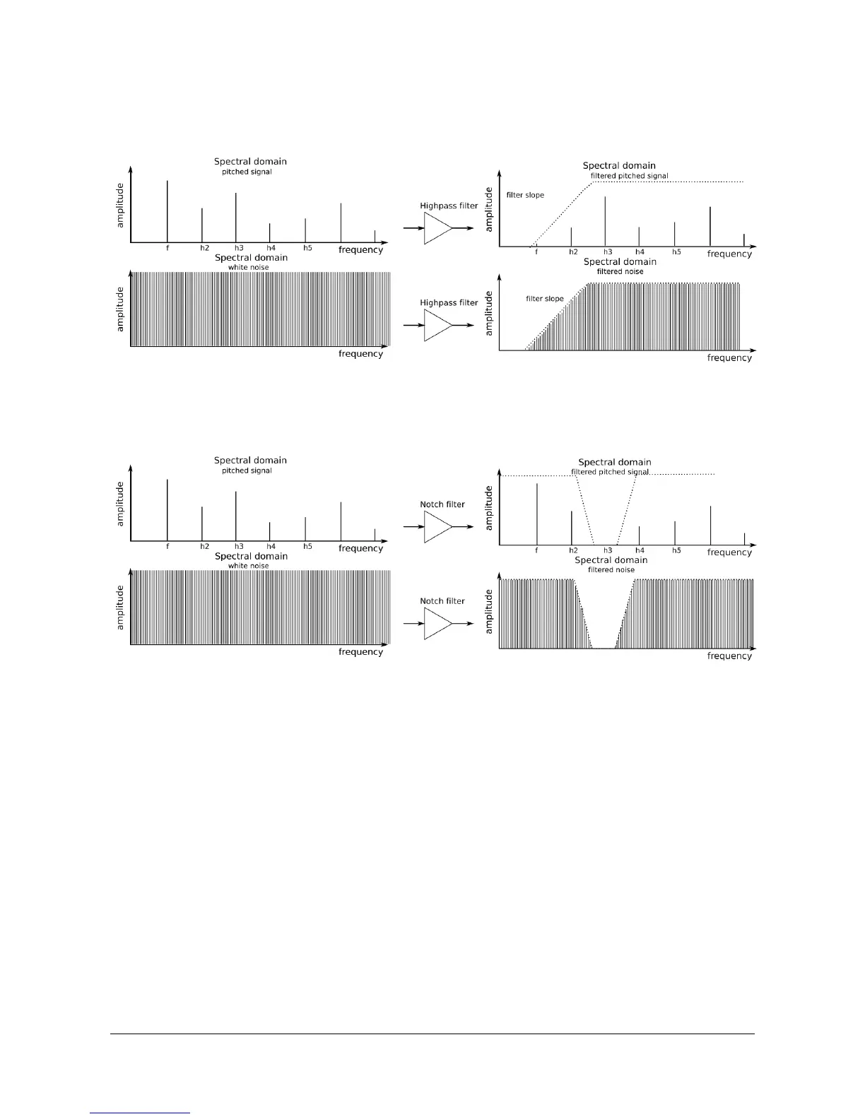 In high-pass mode, partials above the cutoff frequency remain unchanged, while