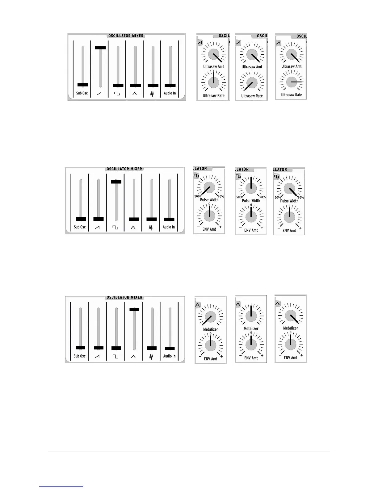 and you’ll hear a hollow, clarinet-like sound. Now turn the Pulse Width knob