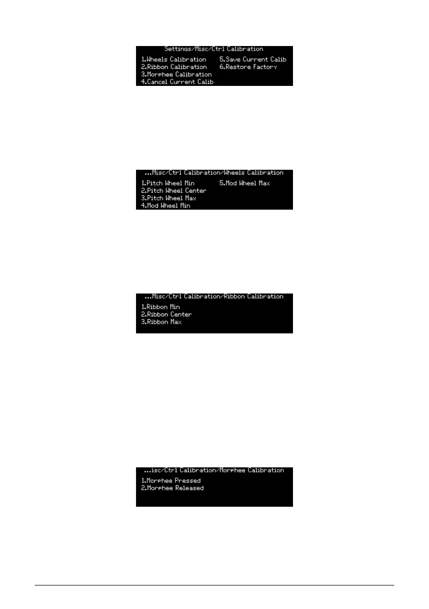 the calibration point for that wheel. To calibrate Pitch Wheel Center, return the Pitch wheel