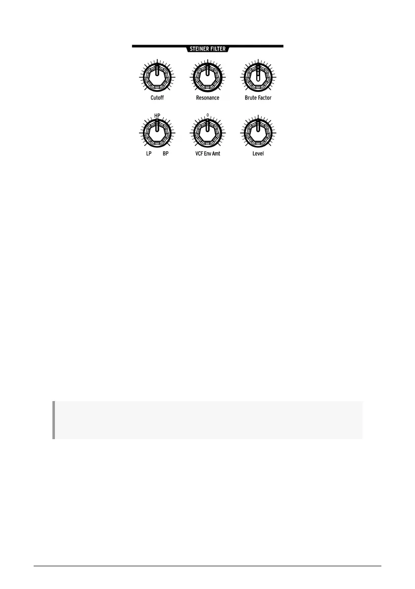 2. Move the Resonance knob halfway up and sweep the filter again. Resonance