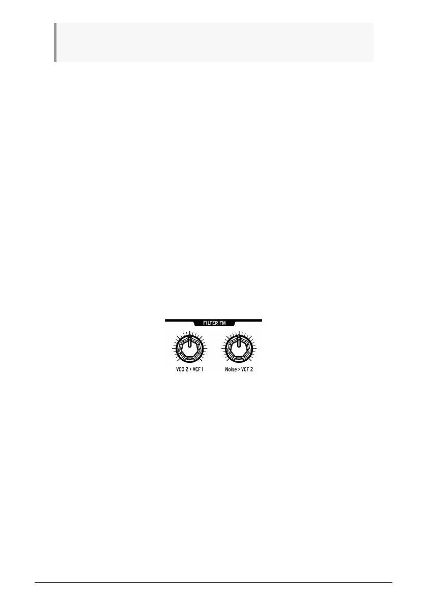 This knob routes the Noise oscillator to VCF 2. The Noise Colour knob [p.25] determines the