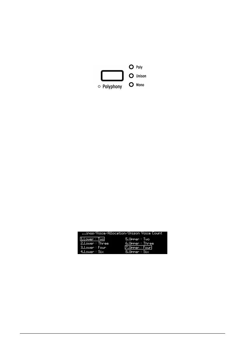 etc. To access these options, hold [Settings] and press [Polyphony]. To access these settings