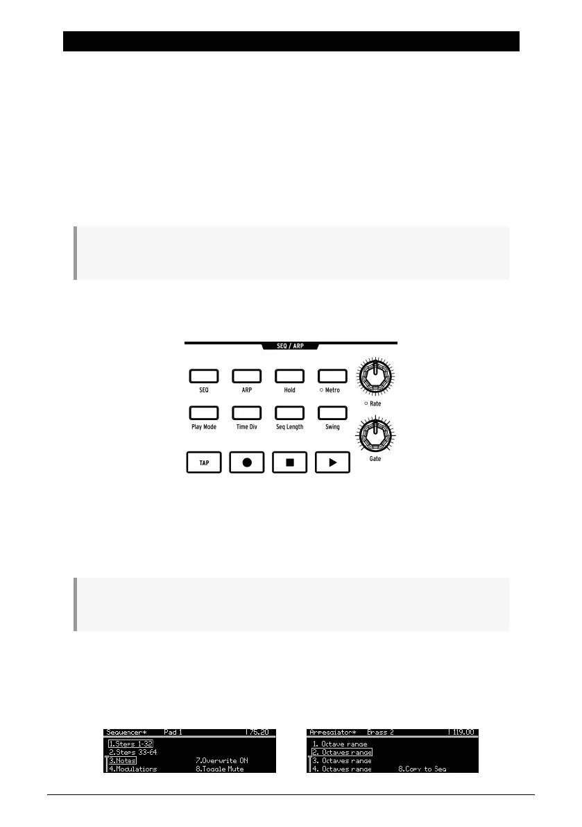 This chapter covers the features of the Seq/Arp section, which includes the Sequencer, the