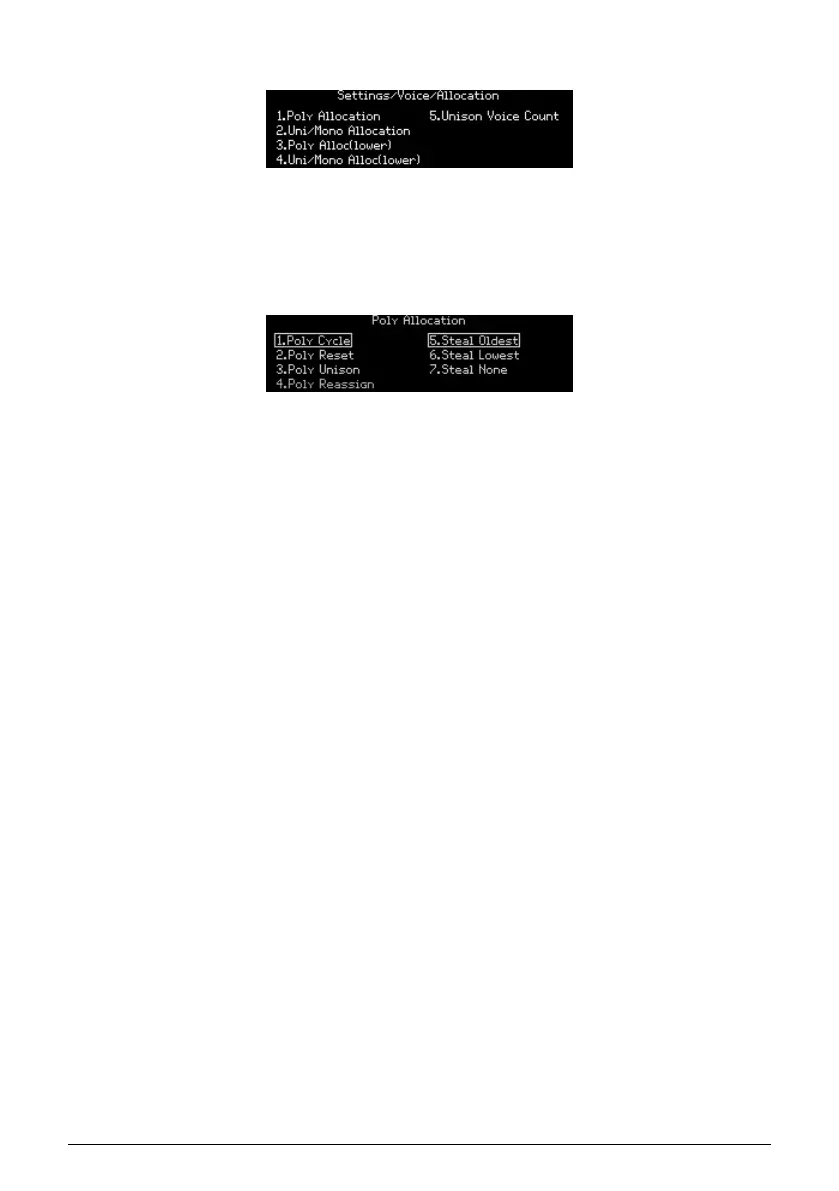 • Poly Cycle assigns a played note to the next available higher-numbered voice.