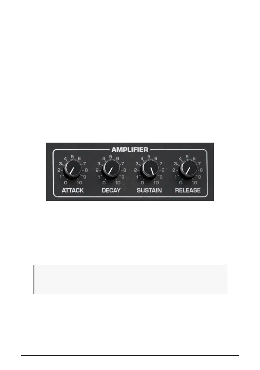 • Release: Adjusts the time it takes for the volume to fall from the Sustain level to