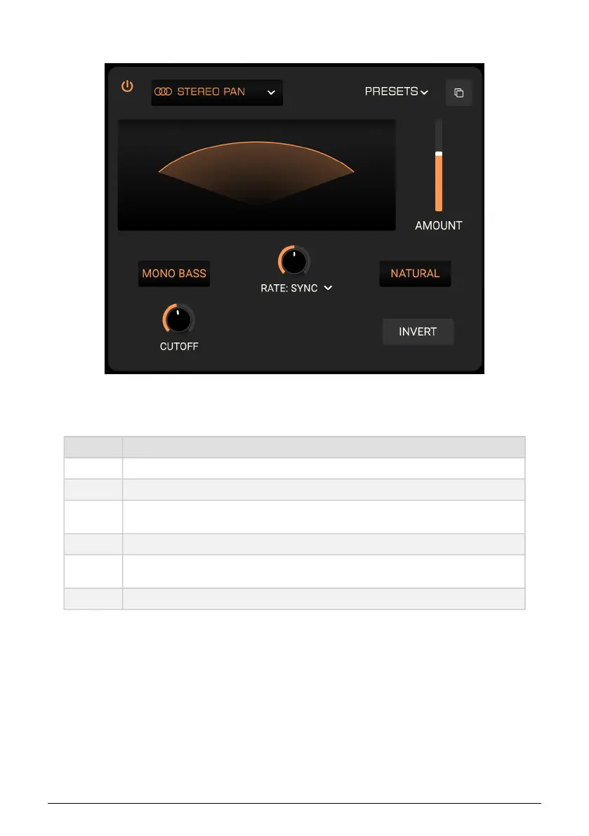 Rate Sets the rate of the panning effect.