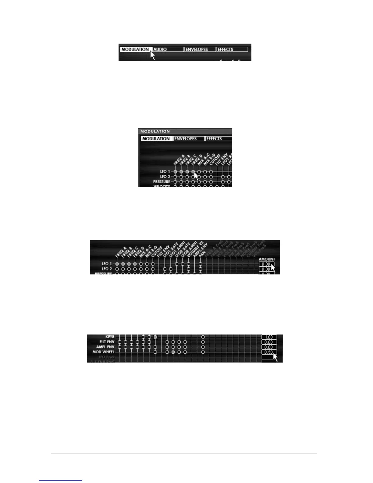 Set the modulation rate in the AMOUNT panel corresponding to this first horizontal line.