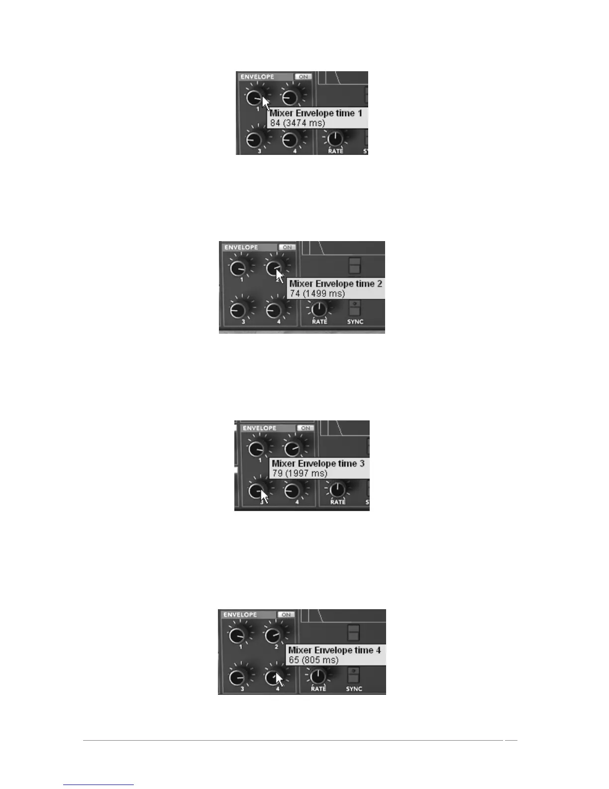 Turn the “3” knob of the envelope to control the time between the “2” point and the “3”