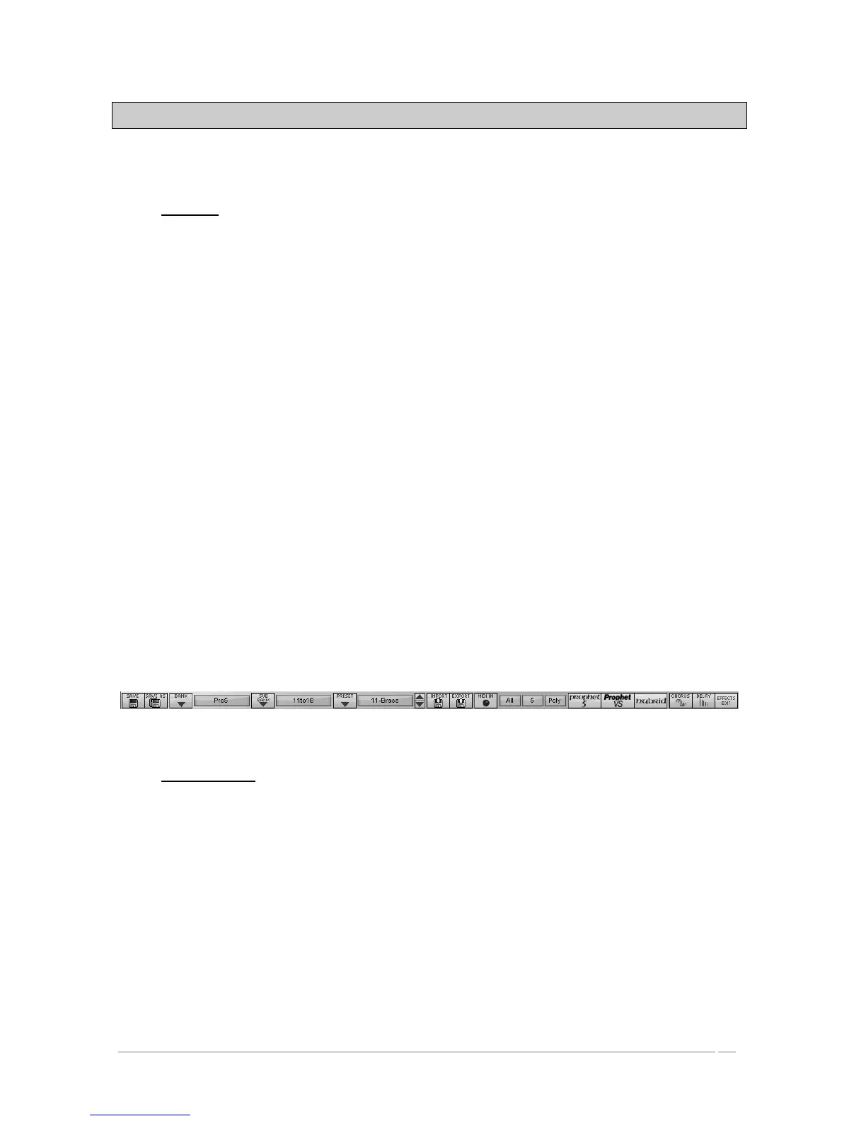 « Prophet 5 », « Prophet VS » et « Hybrid ». Each bank holds a certain number of sub-banks