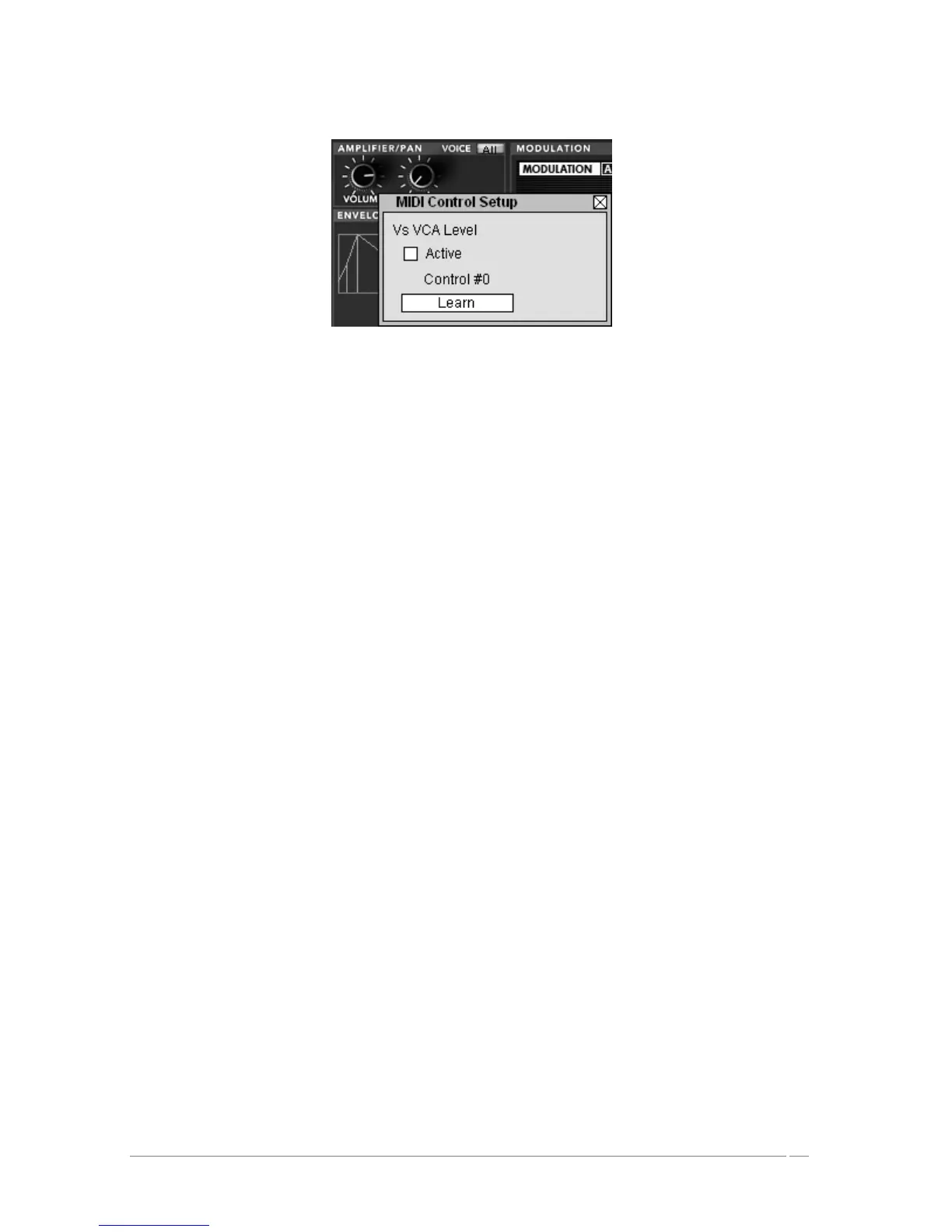 Midi configuration window of a knob