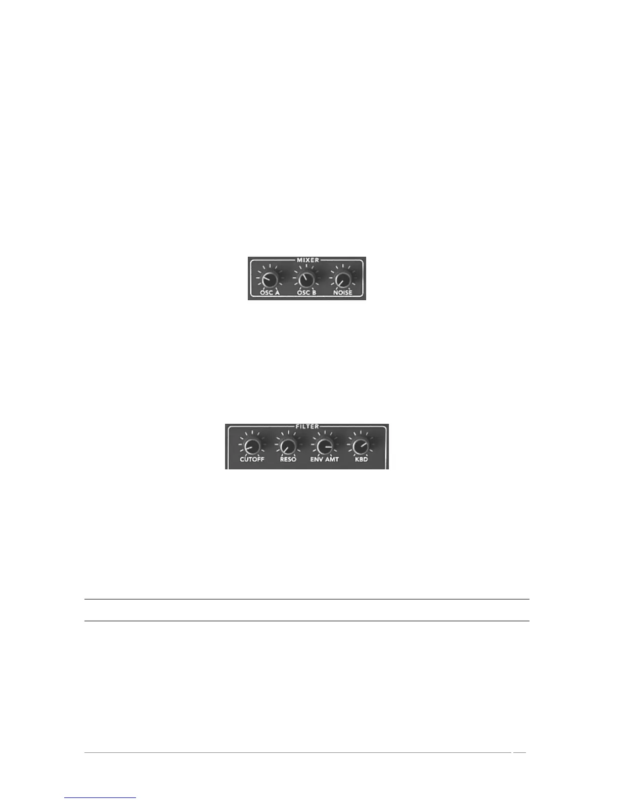 The mixer allows you to set and mix the volume of oscillators A and B as well as the volume of