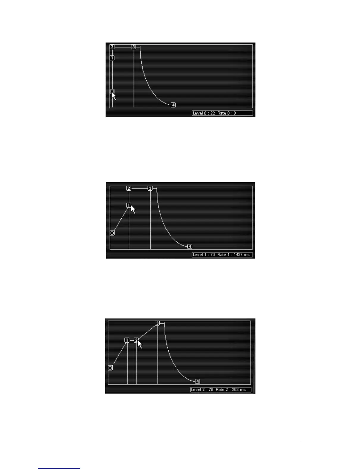 Set point “2” by increasing the LEVEL to a value around 70 and the RATE to about 300ms.