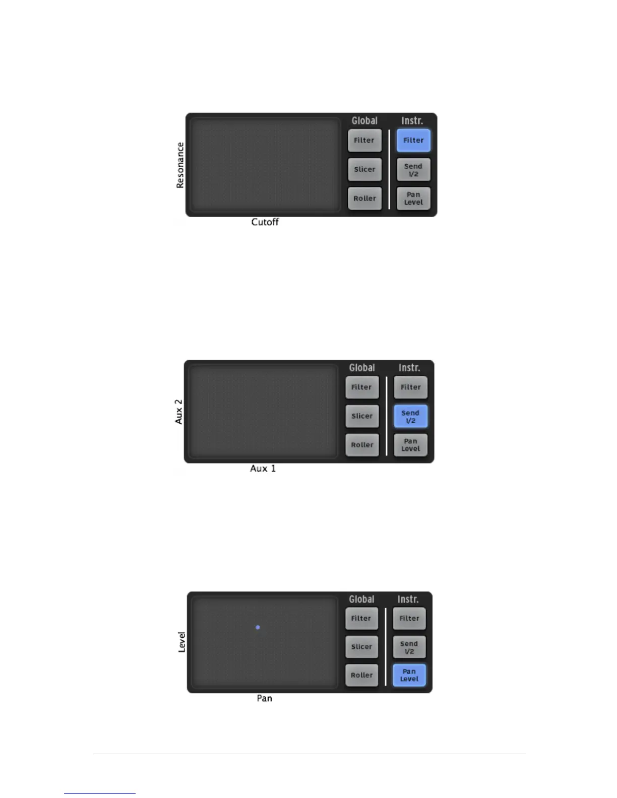 The Instrument effect Pan / Level button allows you to control the stereo position and