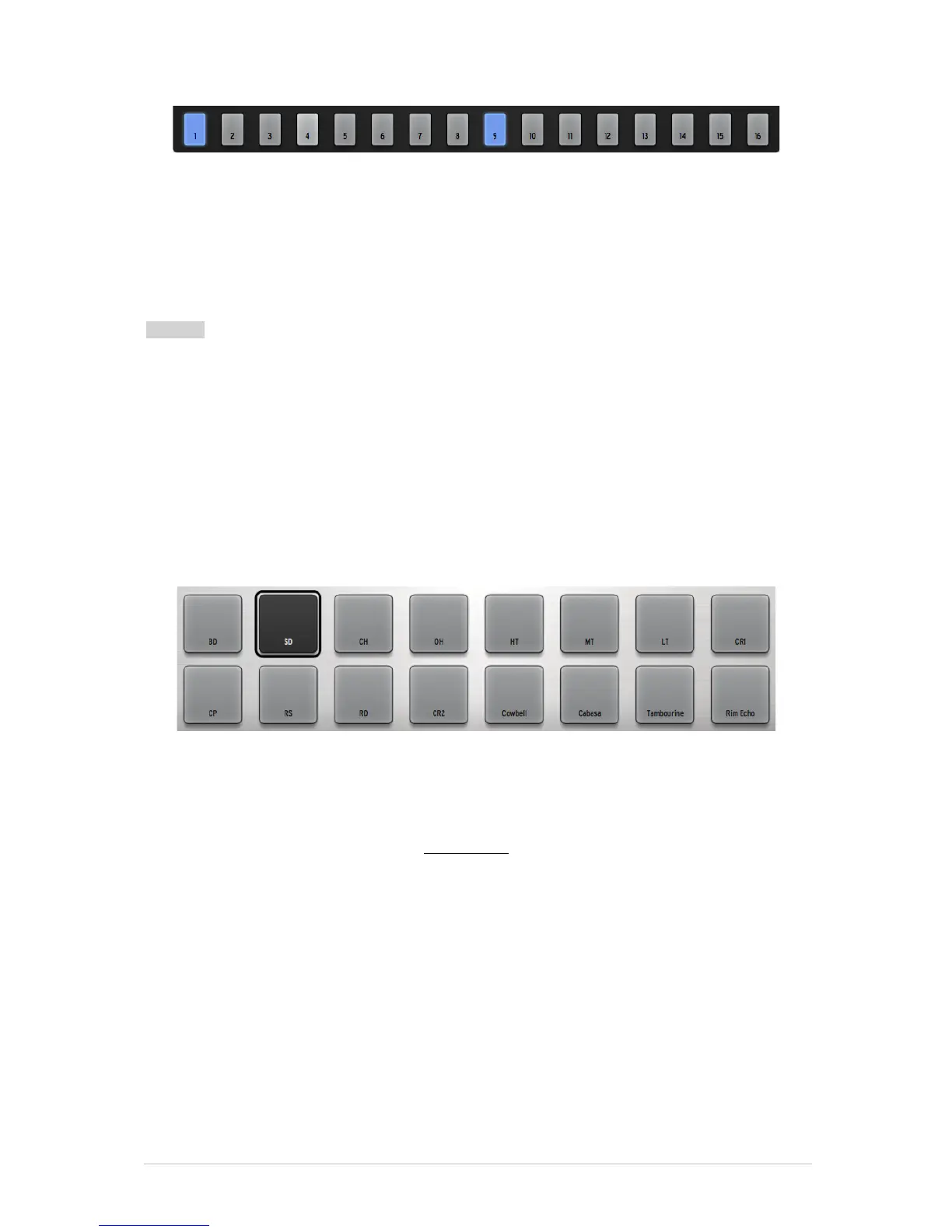 • With the 1-8 / 9-16 button unlit you can play notes from the current instrument