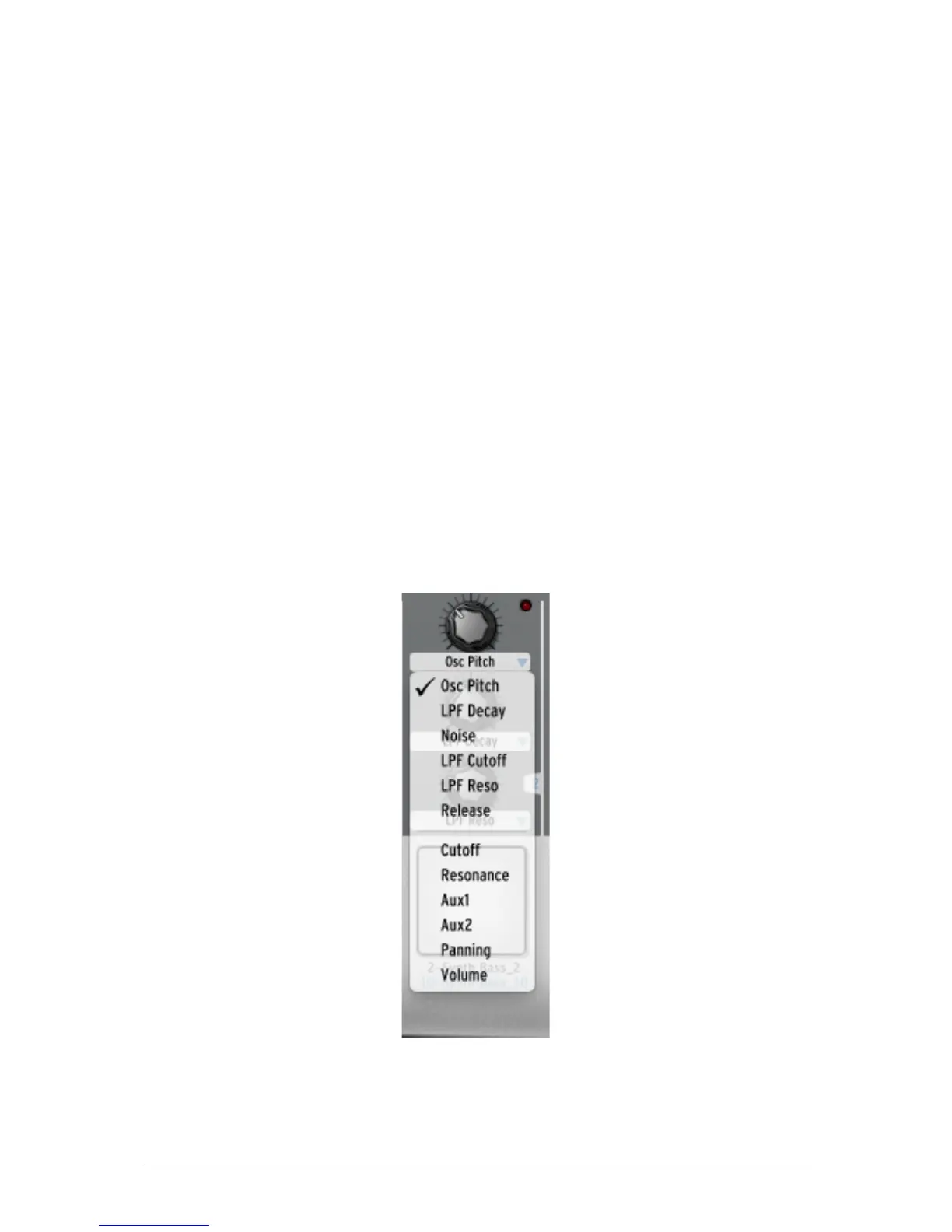 underneath the knob. A contextual menu will appear listing the 6 parameters available in