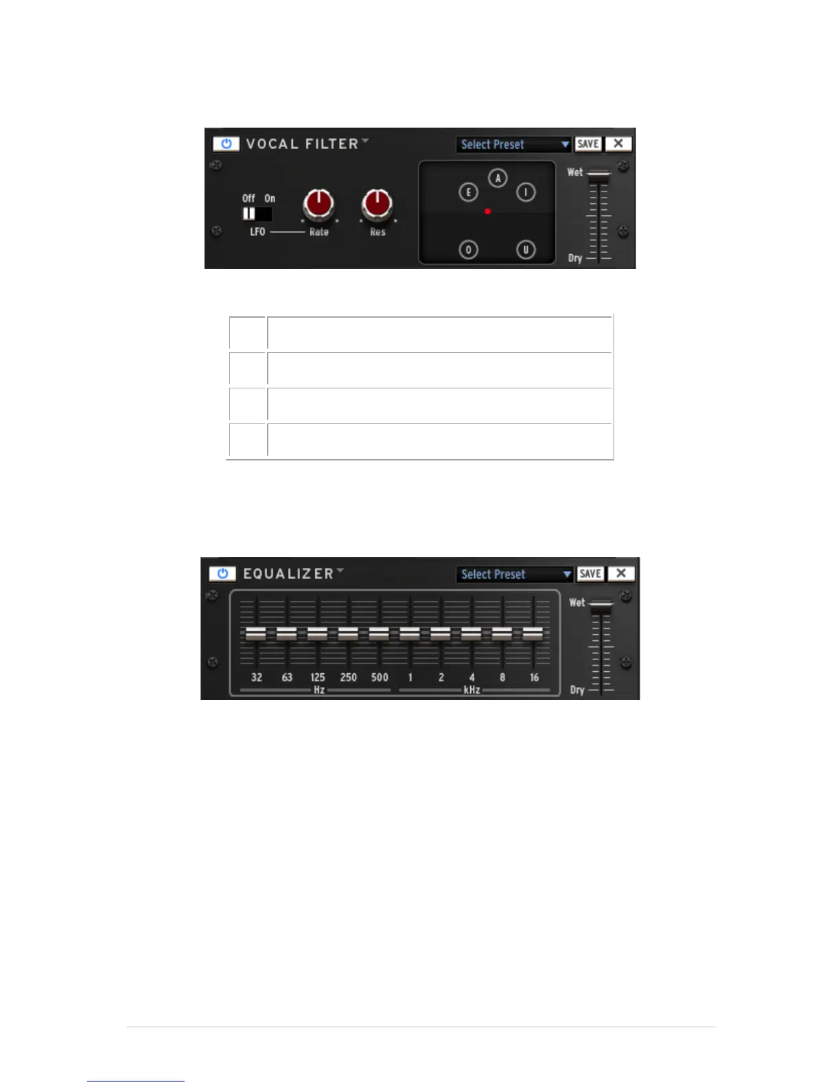 Arturia Spark 2 - Vocal Filter Parameters; Graphic Equalizer