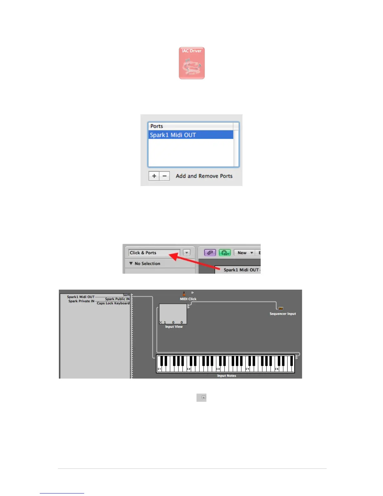 - In the Physical Input box, draw a cable from Spark1 MIDI OUT’ to Sequencer Input