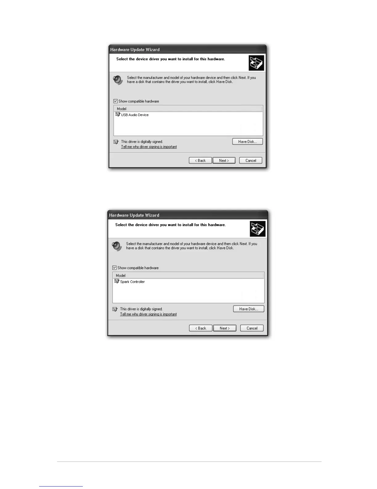 Click Browse, and locate Spark_XP.inf on Spark install DVD :