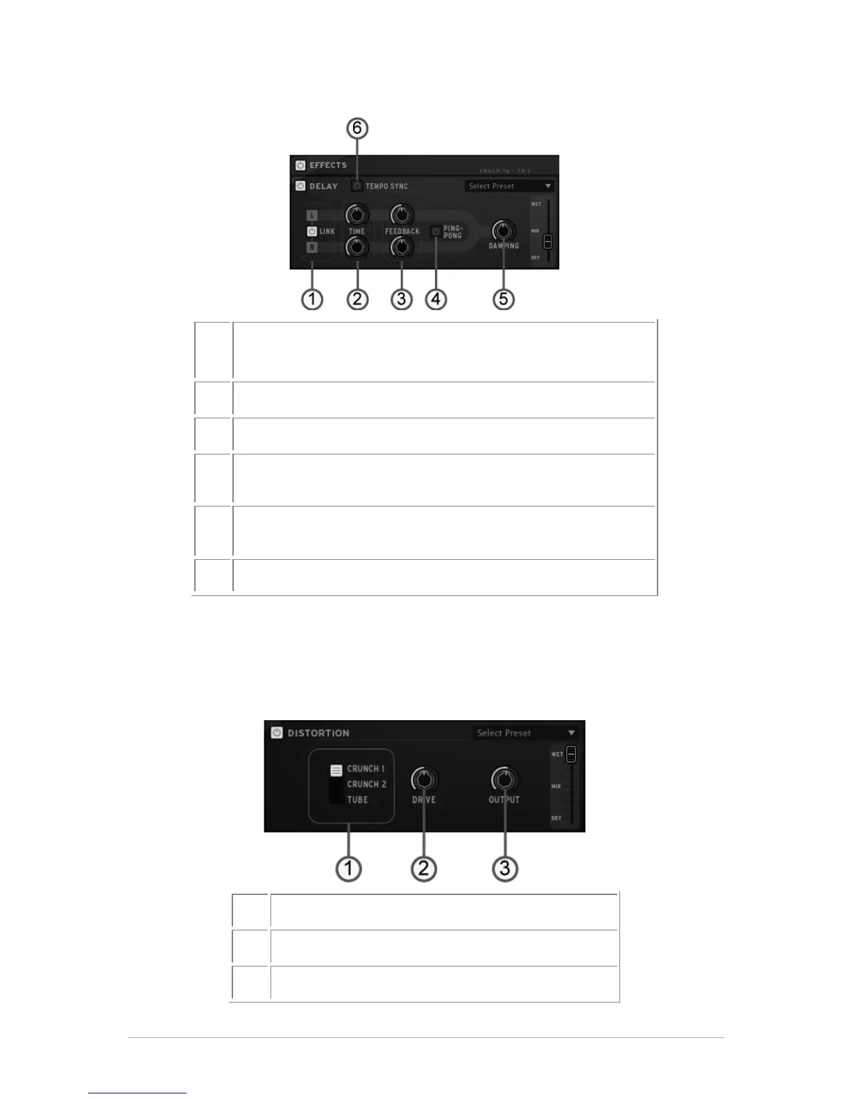 between the left and right channel (for an increased stereo effect), and dampening