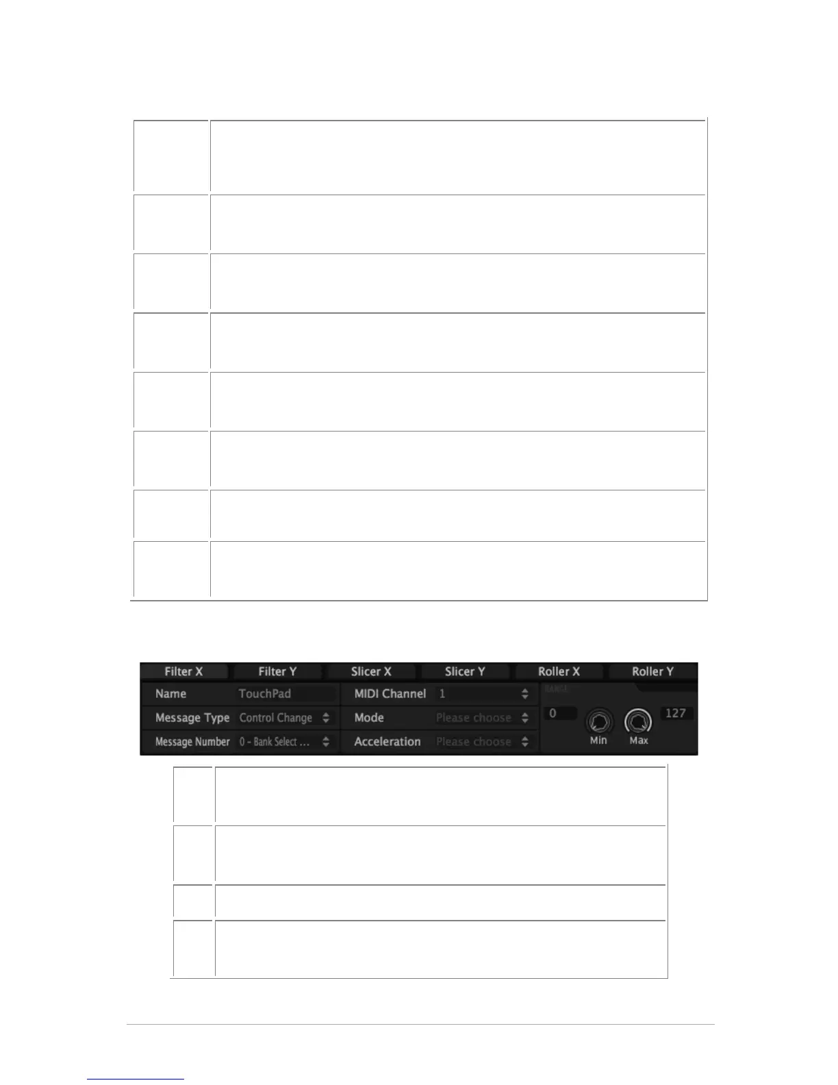 Choose Touch Pad MIDI Message X or Y Minimum Value