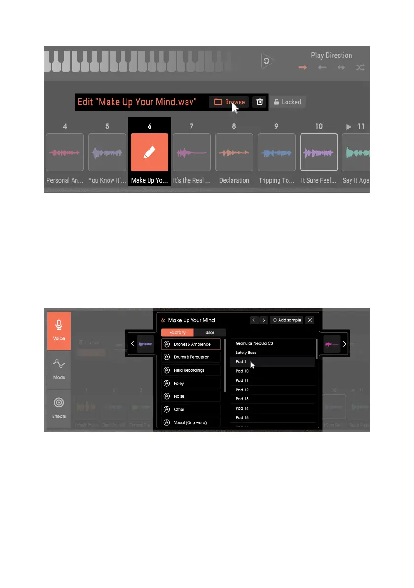 Clicking on a folder (in this case, Drones & Ambiences) shows the available samples in that