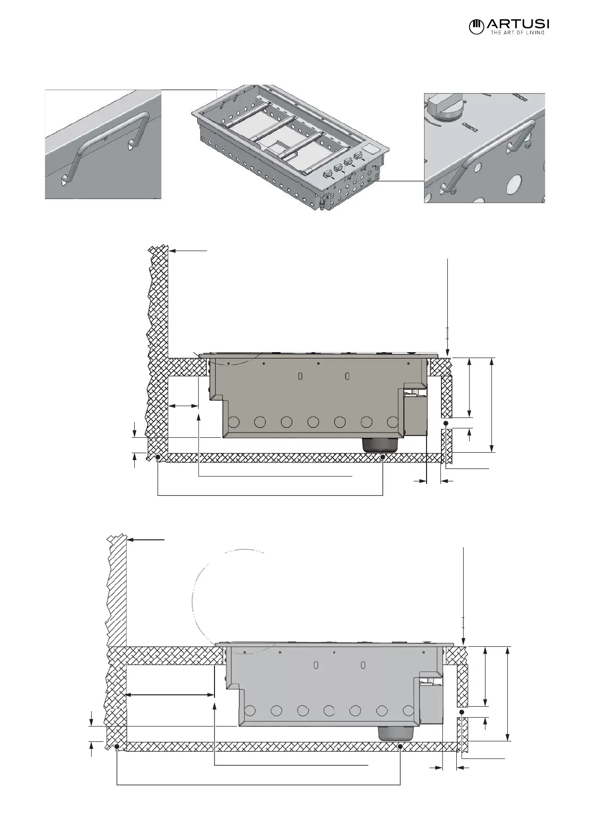 To facilitate insertion in the cabinet, the product has specic lifting handles (see gure below)