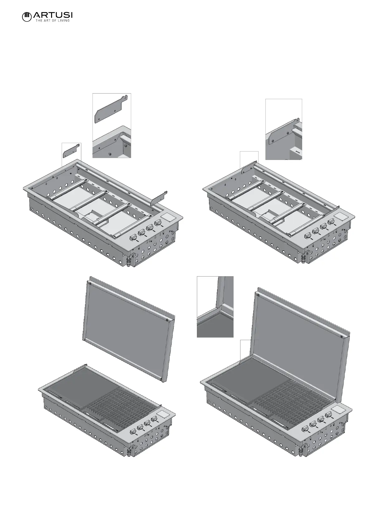 • Remove the hinge from the cover and apply it to the outer frame. Fix it with the special screws provided.